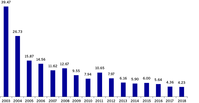 Increasing liquidity in ETF trading has led to significantly lower transaction costs for investors and traders. The graph below shows how implicit transaction costs have fallen by 86% as a result of the increased liquidity in ETF trading in recent years; transaction costs are now below an average of 6 basis points per ETF for the 20 most liquid equity ETFs. Blue-chip ETFs on the DAX or EURO STOXX 50 are the most liquid instrument groups overall in Xetra trading and exceed even the most traded DAX single stocks.
