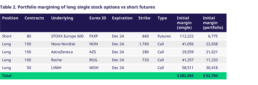 Margin efficiencies of combining short STOXX® Europe 600 futures with a long single-name call position on several GRANOLAS constituents, for example, can achieve savings of 67%, as can be seen in Table 2 below. Alternatively, combining long futures and long put options to offer protection on the single constituencies would yield similarly high margin offsets. This is a significant attraction for the buy-side community and an essential part of Nordic equity markets. With many of these funds based in the UK, a majority are also already active market participants at Eurex.